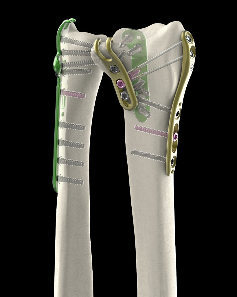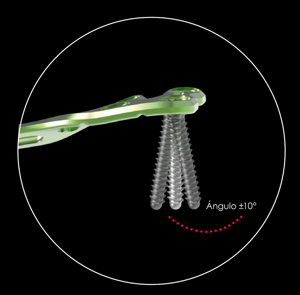 • Varias opciones de bloqueo: tornillo de bloqueo y tornillos corticales.