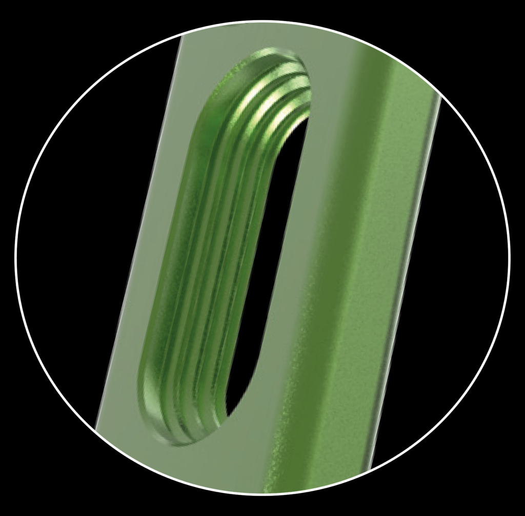 • Sistema de bloqueo poliaxial y tecnología de orificio oblongo de bloqueo.