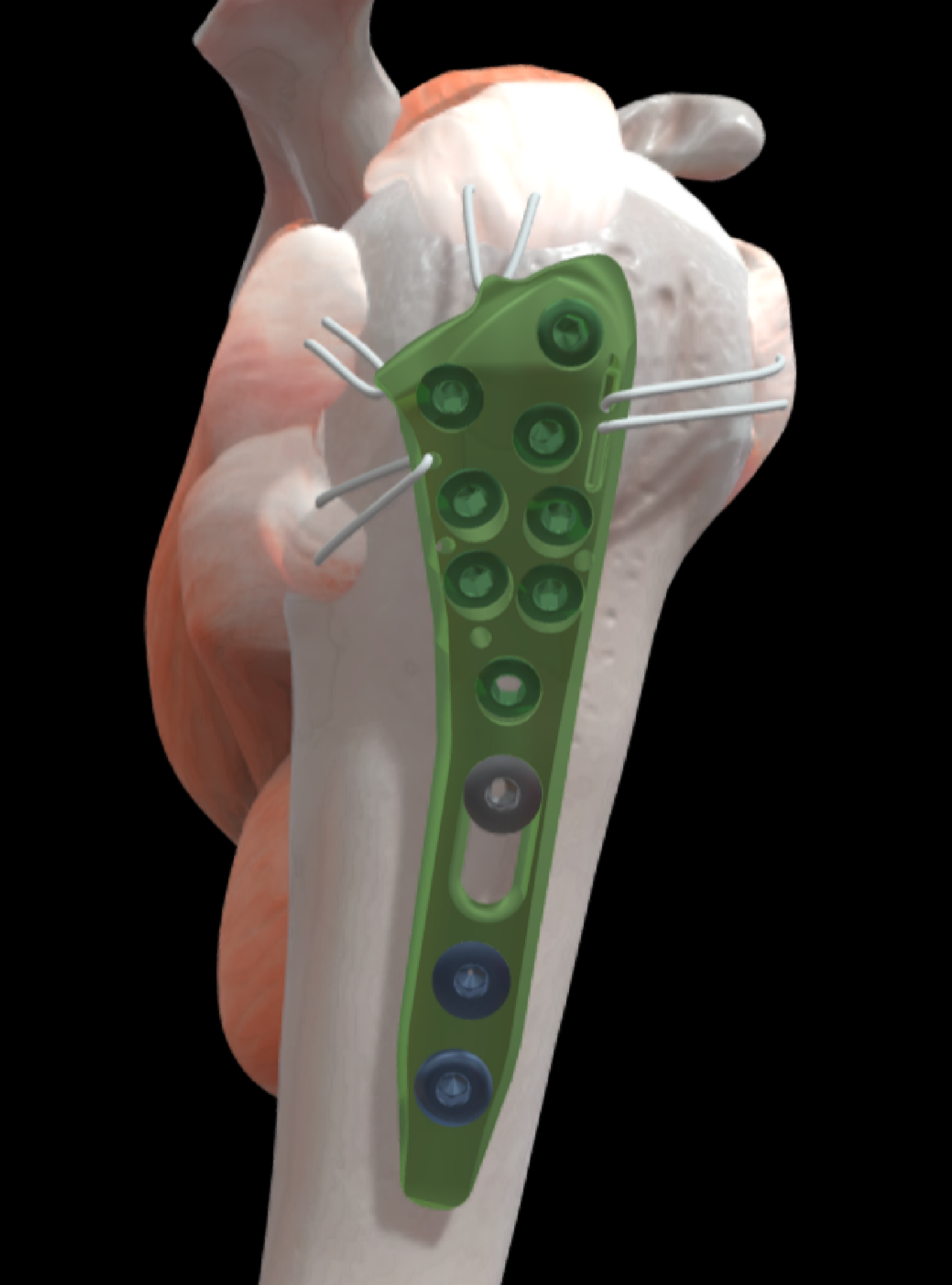 Orificios de sutura únicos y de fácil acceso que permiten una estabilización efectiva de las tuberosidades.