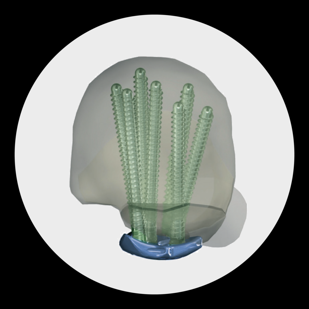 Orificios poliaxiales que permiten una angulación del tornillo de +/- 12,5° (cono de 25°)