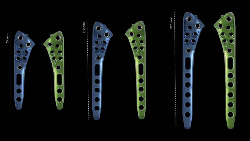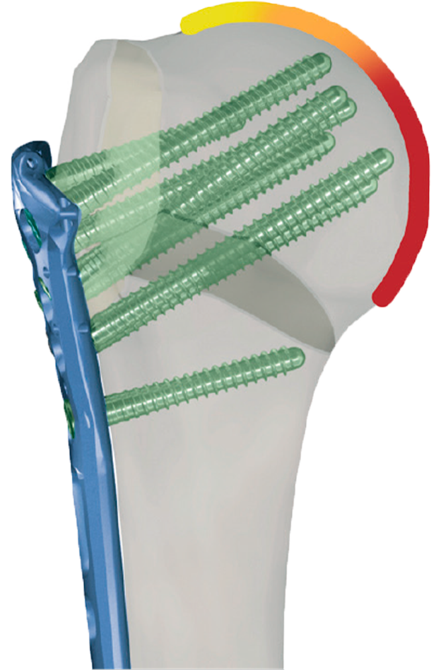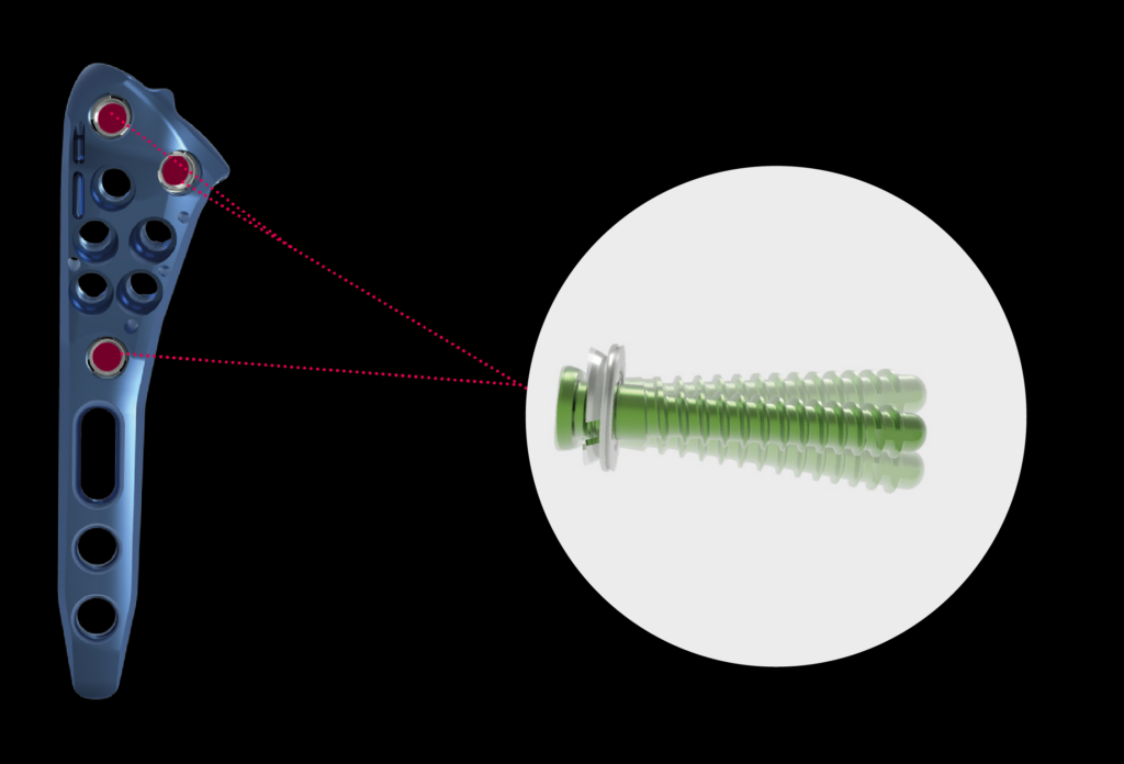 Tres tornillos de bloqueo de ángulo variable permiten hacer frente a cada patrón de fractura.